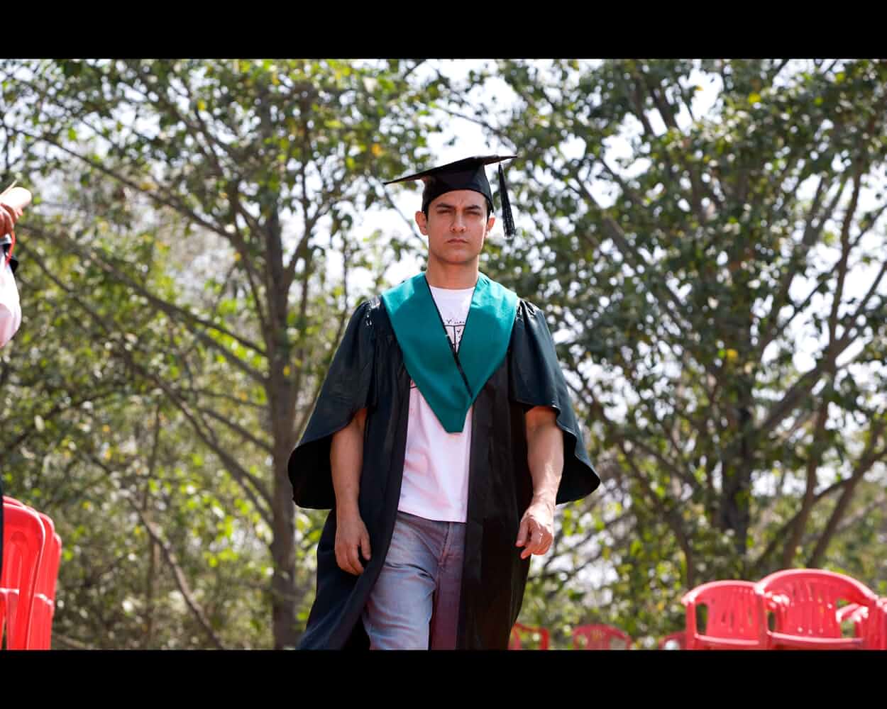Farhan Qureshi and Raju Rastogi want to re-unite with their fellow collegian, Rancho, after faking a stroke aboard an Air India plane, and excusing himself from his wife - trouser less - respectively. Enroute, they encounter another student, Chatur Ramalingam, now a successful businessman, who reminds them of a bet they had undertaken 10 years ago. The trio, while recollecting hilarious antics, including their run-ins with the Dean of Delhi's Imperial College of Engineering, Viru Sahastrabudhe, race to locate Rancho, at his last known address - little knowing the secret that was kept from them all this time.